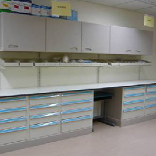 準備室 模擬病房之護理準備室設計將一般耗材、藥品、儀器、廢棄物處理集中管理及處理,以方便護理工作之準備及取用,練習醫療廢棄物管理及處理,並設備分藥包裝機,方便學生了解病房單一劑量之給藥作業流程。 |