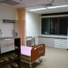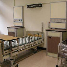 示範病房三 示範病房三除了配備一般病房基本配備外,特別呈現兩人房模式及立柱式電源、氧氣及抽吸機等較先進特殊之設備。 |