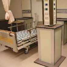 示範病房一 一般病房除了手動病床、床上桌、床旁桌、訪客椅、彷病房氧氣及抽吸面板,並於窗下設計儀器及包布置物櫃,使學生充分了解一般病房設備之使用方法並兼具教學設備儲存及管理之功能。 |