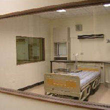 加護病房 加護病房採雙觀察窗設計,中間的教師指導區設計方便教師在平時對學生的練習觀察及技術考試提供學生一個獨立不受干擾的考試空間,並可以應用兩病房之間的觀察窗提供學生在彼此的技術觀摩上一個適當的空間。 |